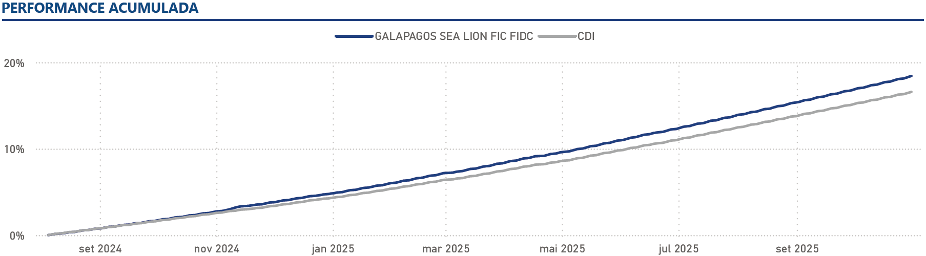 O fundo Galapagos Sea Lion investe em cotas seniores de fundos de investimento em direitos creditórios com rating mínimo A-.